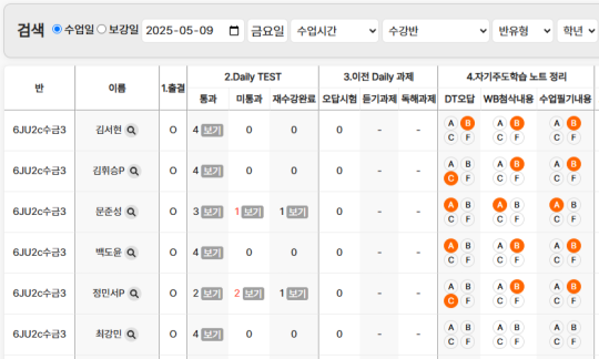 Daily TEST 80점 미달 또는 과제 미수행 학생을 위한 체계적인 추가 학습 시스템